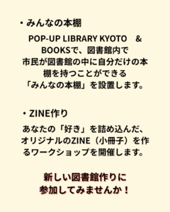 京都市も図書館が市民のサードプレイスになるように、様々な取組を通して図書館の新しい在り方を検討しています。