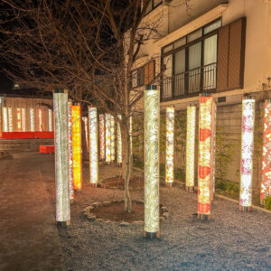 This place has about 600 poles with Yuzen patterns, and they are arranged like a forest. Anyone can walk through freely.