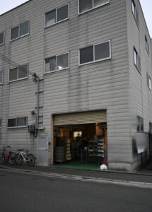 その手前右手に、1軒の工場があります。シャッターが開いていて、よく見ると和菓子が並んでいます。ここは和菓子製造の『比良多(ひろた)』さんです。
