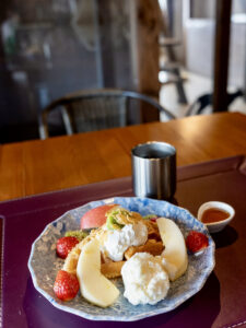今回注文したフルーツワッフルは季節のフルーツいっぱいにアイスまで付いてテンションあがりました💕