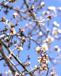 梅林とまでは言えませんが、お天気の良い日はベンチに座って小鳥のさえずりや川のせせらぎに耳をかたむけて、梅の良い香りに包まれリラックスするには最高の場所ですよ🌸