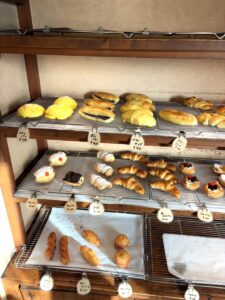 店内には焼きたてのパンがずらっと並んでいて、通りがかるとつい入りたくなるいい香りが広がっています✨